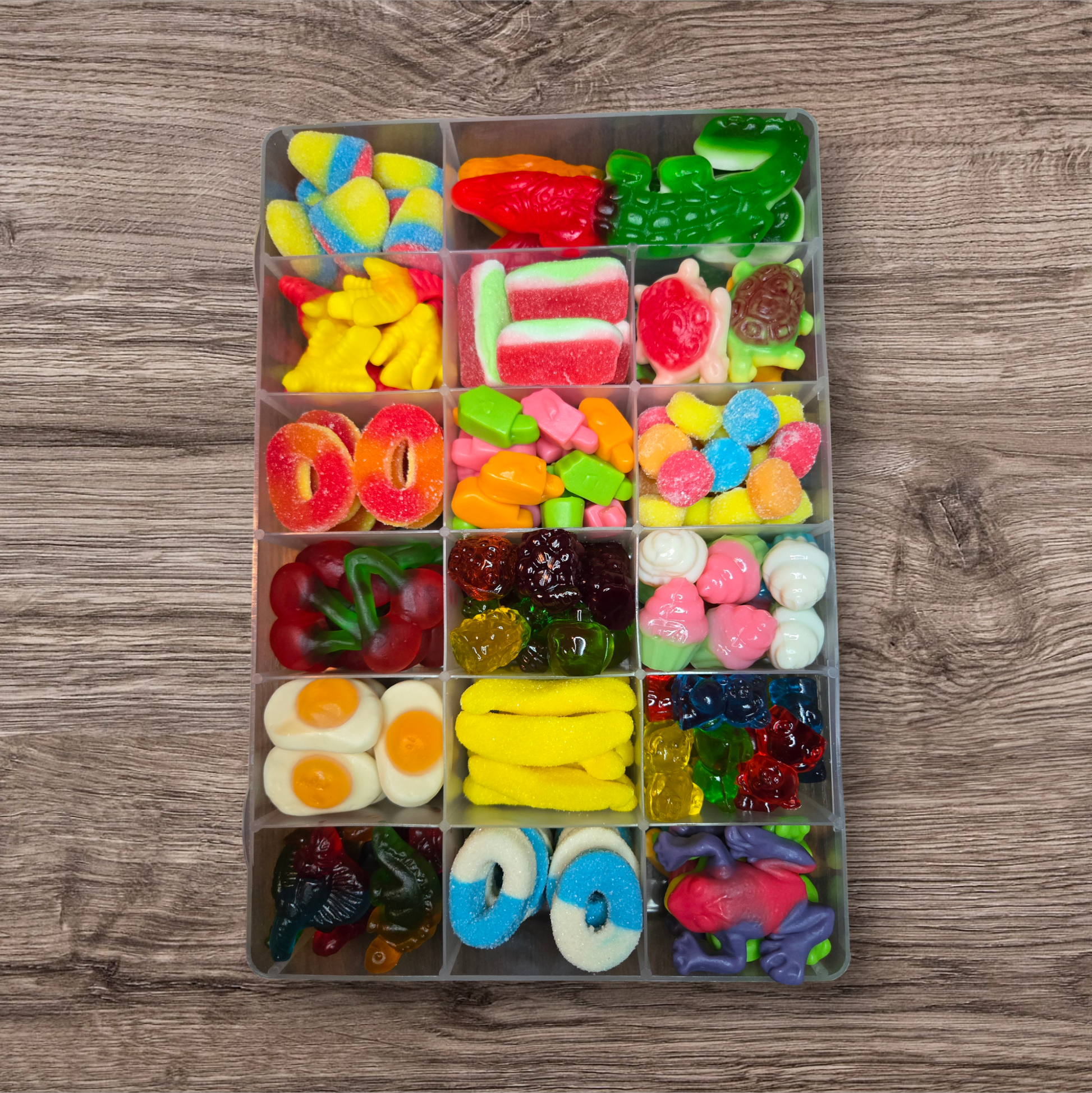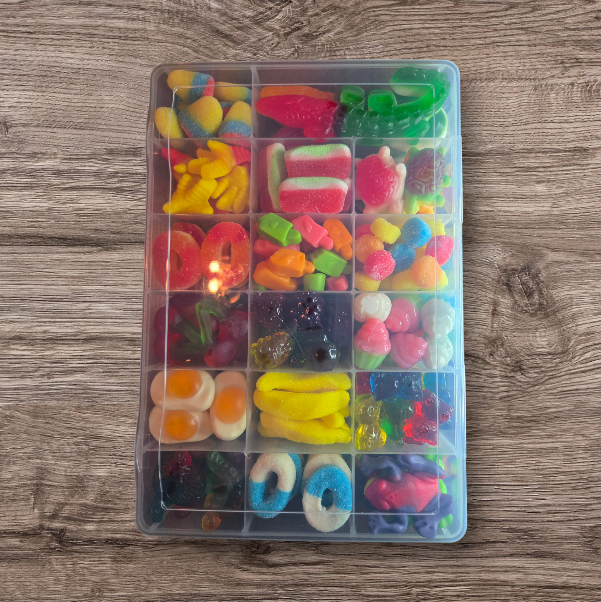 Get ready to snack! Whether you're heading out on a road trip, enjoying a drive-in movie, or cozying up for a movie night at home, this Gummy Snackle Box has you covered. With 17 varieties of your favorite gummies and a total weight of over 3 pounds, it's the ultimate treat to satisfy your sweet tooth.