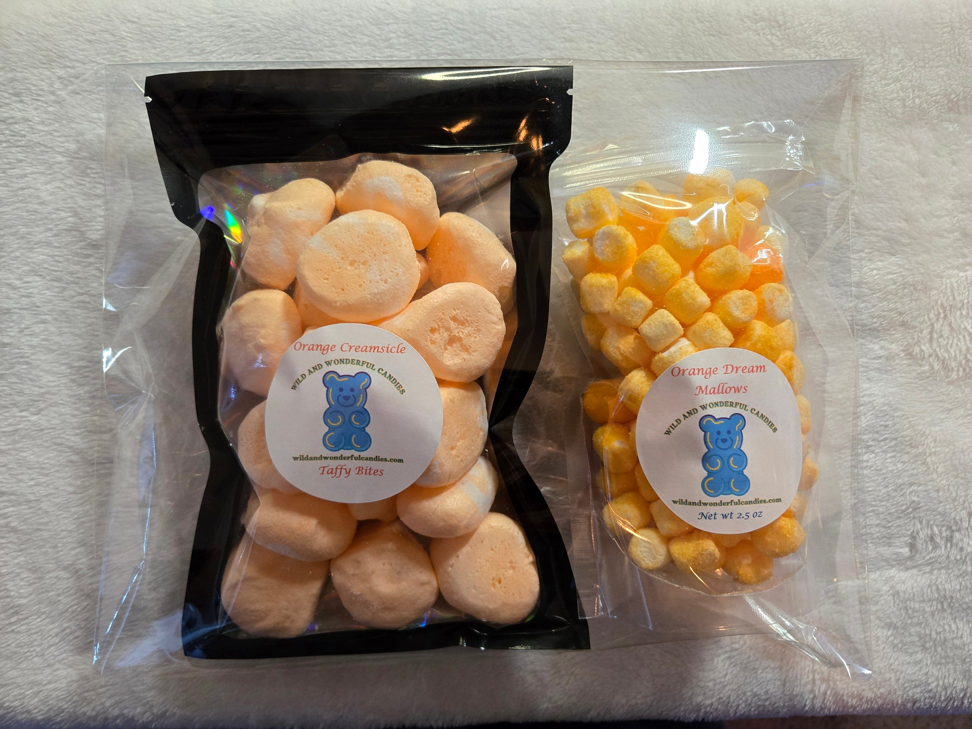 For those yearning for the heavenly taste of orange creamsicle, this duo is just what you need! It includes our Orange Creamsicle Taffy Bites and Orange Dream Mallows. Don’t wait—grab this mouthwatering bundle today