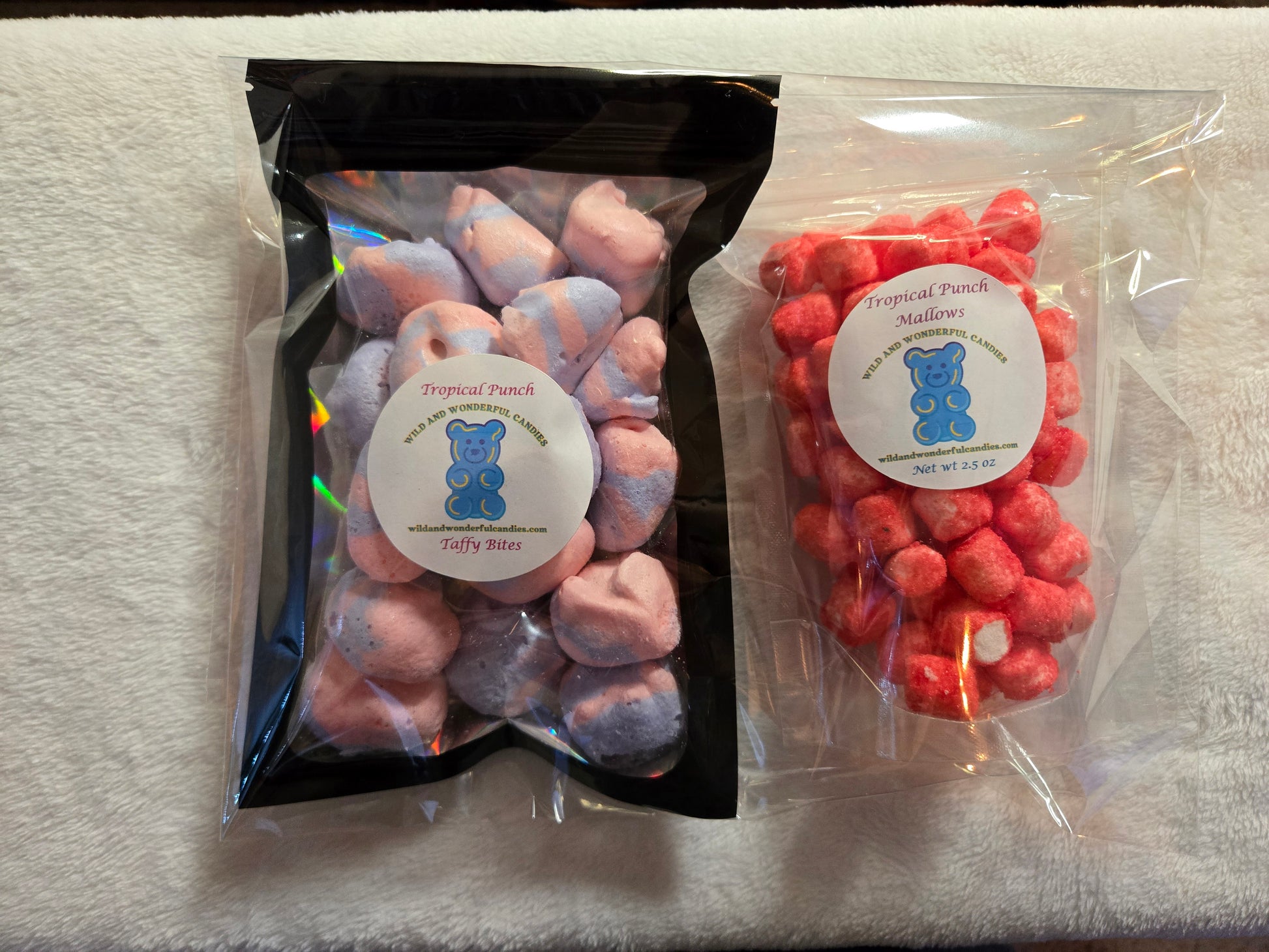 If tropical flavors excite your taste buds, this duo is just for you! Enjoy our Tropical Punch Taffy Bites alongside our Tropical Punch Mallows in this delightful two-pack. Experience a true tropical flavor explosion!